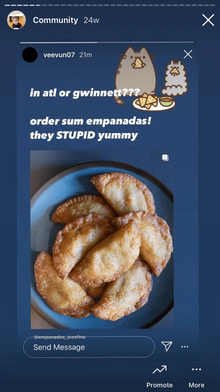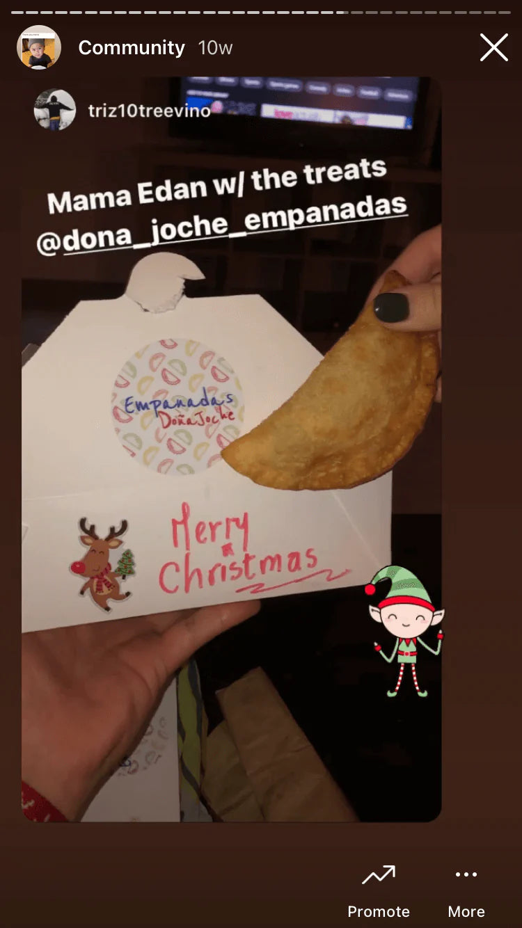 It all began when I asked some friends if they would like to try my mom’s empanadas. When everyone eagerly said yes, it was not a surprise. Everyone loves empanadas, especially my mom’s. Soon, we started selling them to friends and family. Very quickly, orders started up to flood in, and by word of mouth we started getting orders from a lot of people -- even strangers. Creating our social media pages (Instagram, Facebook, Nextdoor) was a big turning point for our orders.